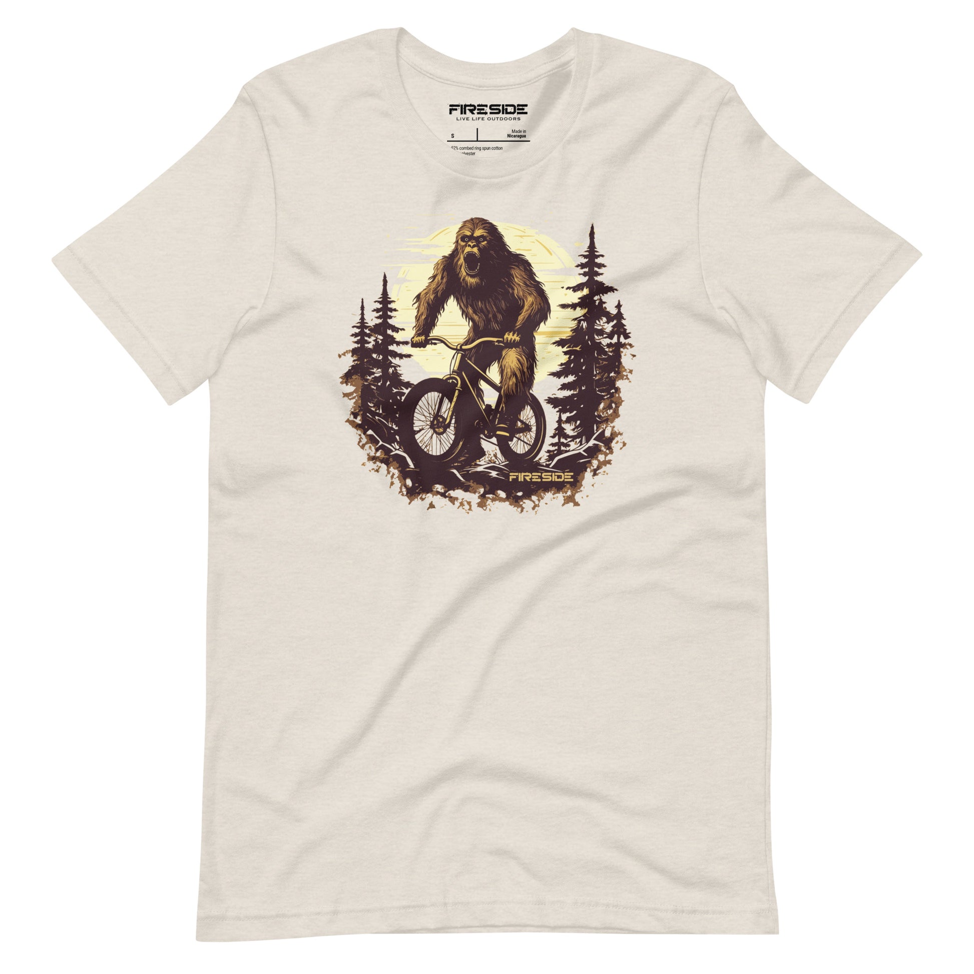 Shhh...Bigfoot exists! And he's riding a mountain bike on our 'Wild Ride' tee!